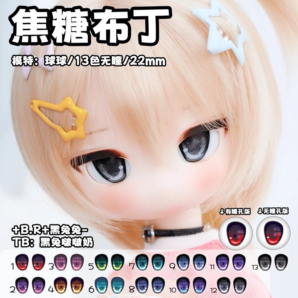 【B.R】像素盐bjd/DD/mdd/熊妹/tinyfox 水贴眼 二次元卡通眼BJD/DD/MDD眼片卡通眼 ドール アイ 1/3 1/4 1/6 1/8DOLL SD DD MDD MSD YOSD オビツ11 球体関節人形 BJD 目 20mm 18mm 16mm 14mm 10mm 眼球 パーツ ドール用
