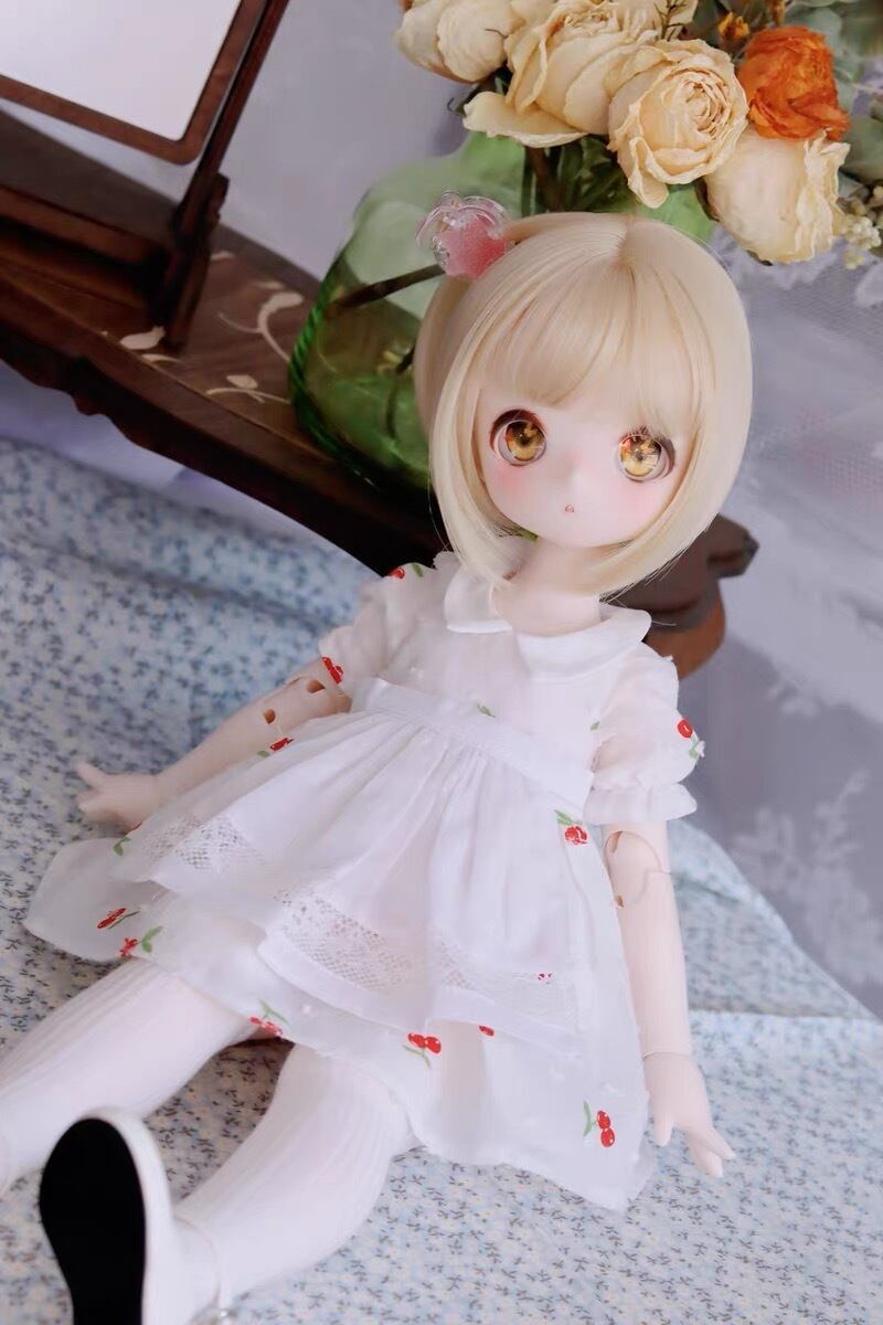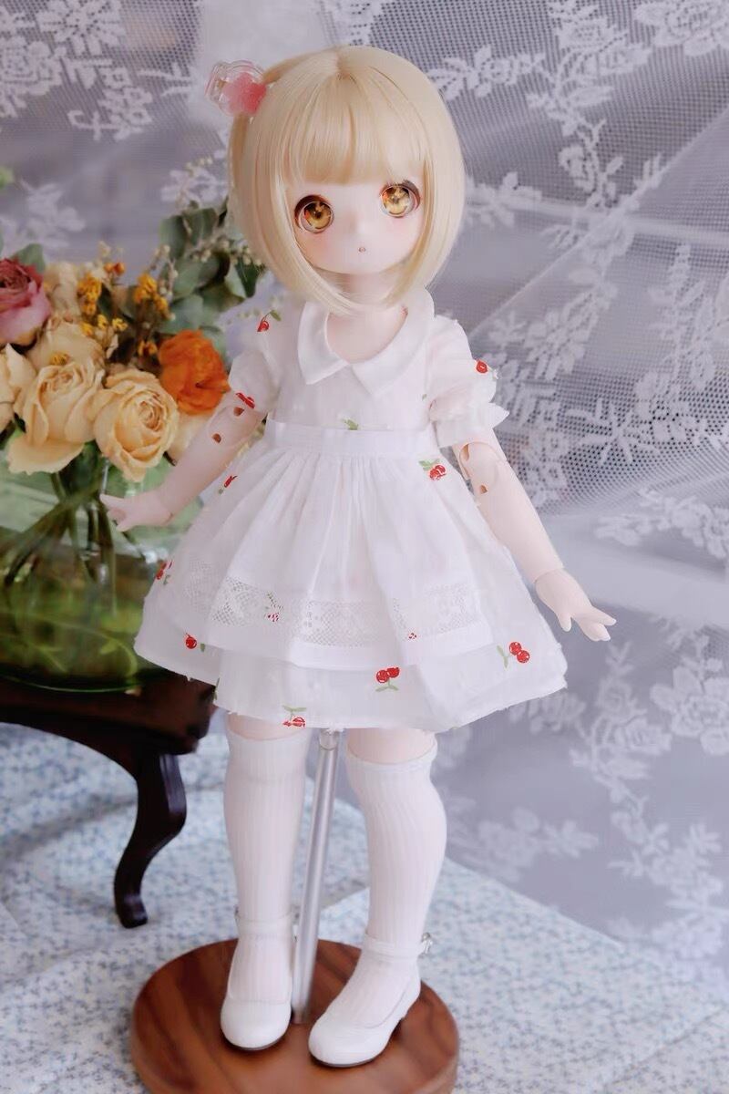衣装セット!さくらんぼ ワンピース エプロン ドレス 洋服 服 BJD 1/4 球体関節人形 MDD KUMAKO DOLL ドール用