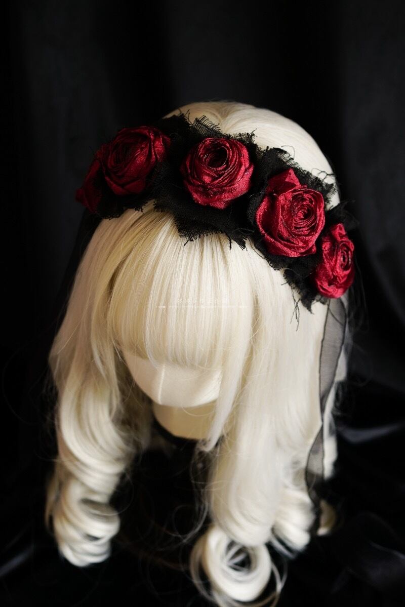 3点セット !全3色!薔薇 ローズ ばら ピン ブローチ チョーカー フリル レース レディース ファッション 女の子 Lolita 可愛い 髪飾り コスプレ 花冠 ゆめかわいい ハット 帽子 ボンネット ビスクドール 大人用 ロリータ ファッション ハーフボンネット ヘアアクセサリー ヘッドドレス カクテルハット カチューシャ