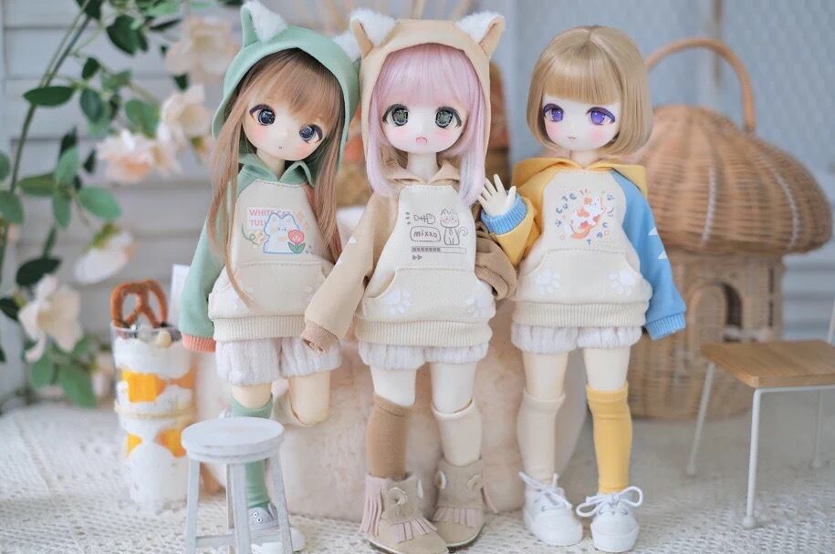 3点セット!衣装 ネコ 猫 パーカー トレーナー パンツ ソックス 洋服 服 コスプレ アウトフィット 熊妹 兔妹 ワンピース ドレス BJD 1/4 1/6 YOSD 幼SD 球体関節人形 MDD KUMAKO MSD DOLL ドール用