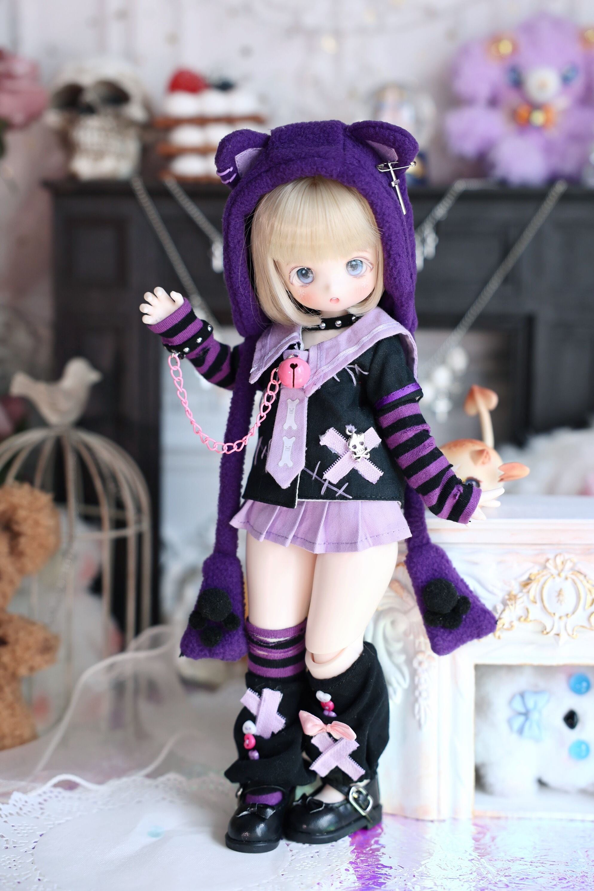 8点セット!衣装 ワンピース ドレス フリル レース 女の子 アクセサリー 洋服 服 コスプレ アウトフィット 熊妹 兔妹 ワンピース ドレス BJD 1/4 1/6 SOOM 球体関節人形 MDD KUMAKO MSD YOSD 幼SD DOLL ドール用