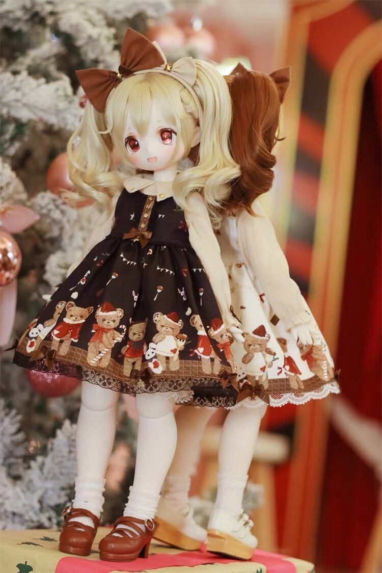セット!熊 くま 耳 カチューシャ ヘアアクセサリー 洋服 服 コスプレ アウトフィット ワンピース ドレス BJD 1/4 球体関節人形 MDD DOLL ドール用