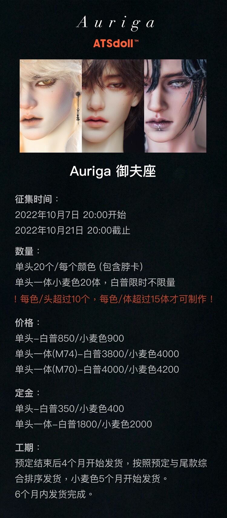 ヘッドのみ!ATSDOLL! ノーメイク ボディなし 1/3 ヘッド ドール用 球体関節人形 本体 DOLL ボディ カスタムドール