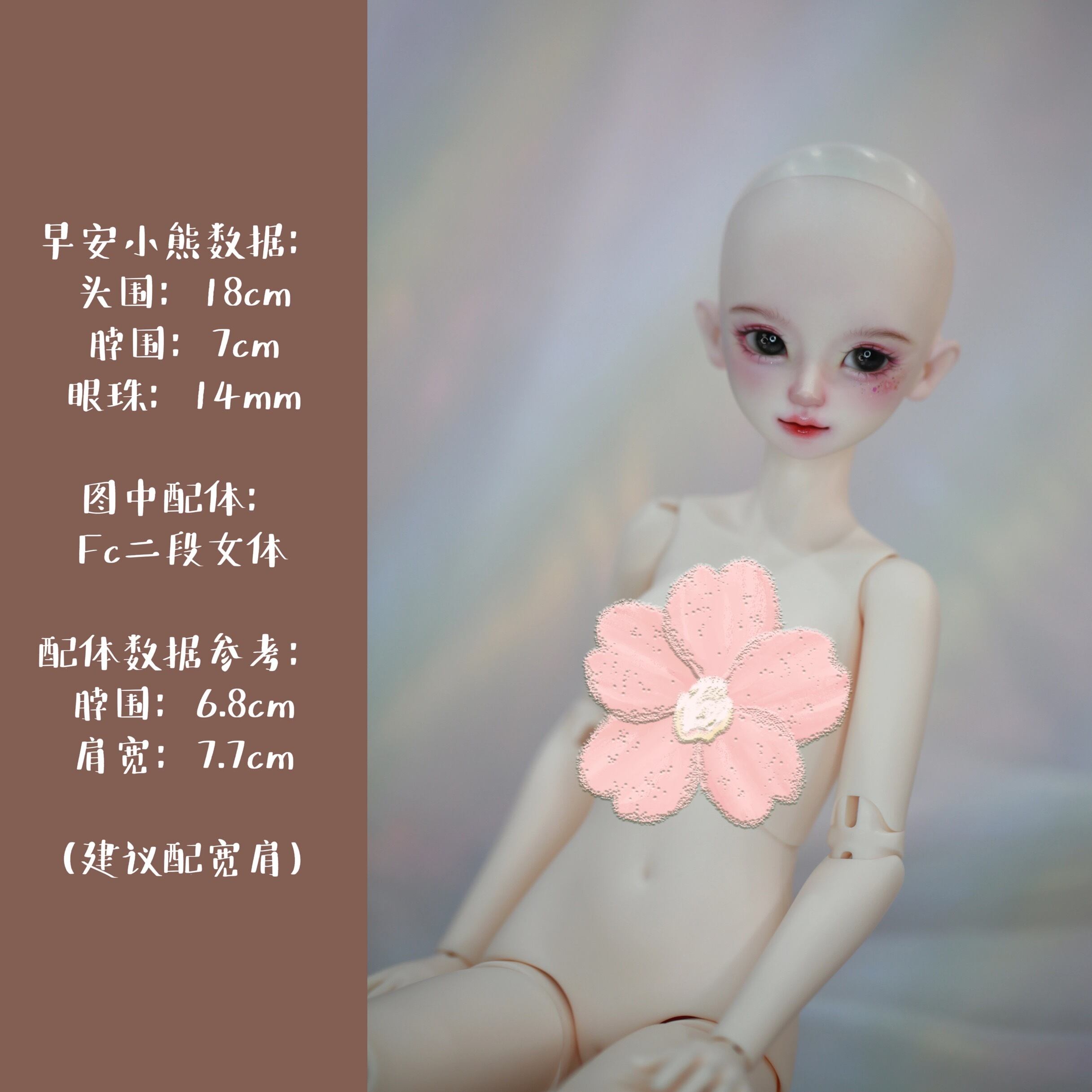ヘッドのみ![耷耷自制]四分bjd单头 早安小熊 ボディなし ノーメイク HEAD BJD 1/4 MDD MSD 女の子 球体関節人形 本体 DOLL ボディ カスタムドール パーツ 素体