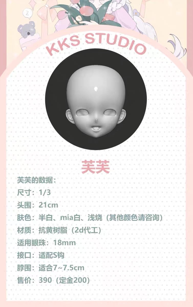 ヘッドのみ!KKS STUDIO 剋剋自制 芙芙 1/3 树脂娃头 SD DD 自制bjd娃娃人偶 单头素头 ノーメイク ボディなし ヘッド ドール用 球体関節人形 本体 DOLL ボディ カスタムドール メイクなし ありもできます!